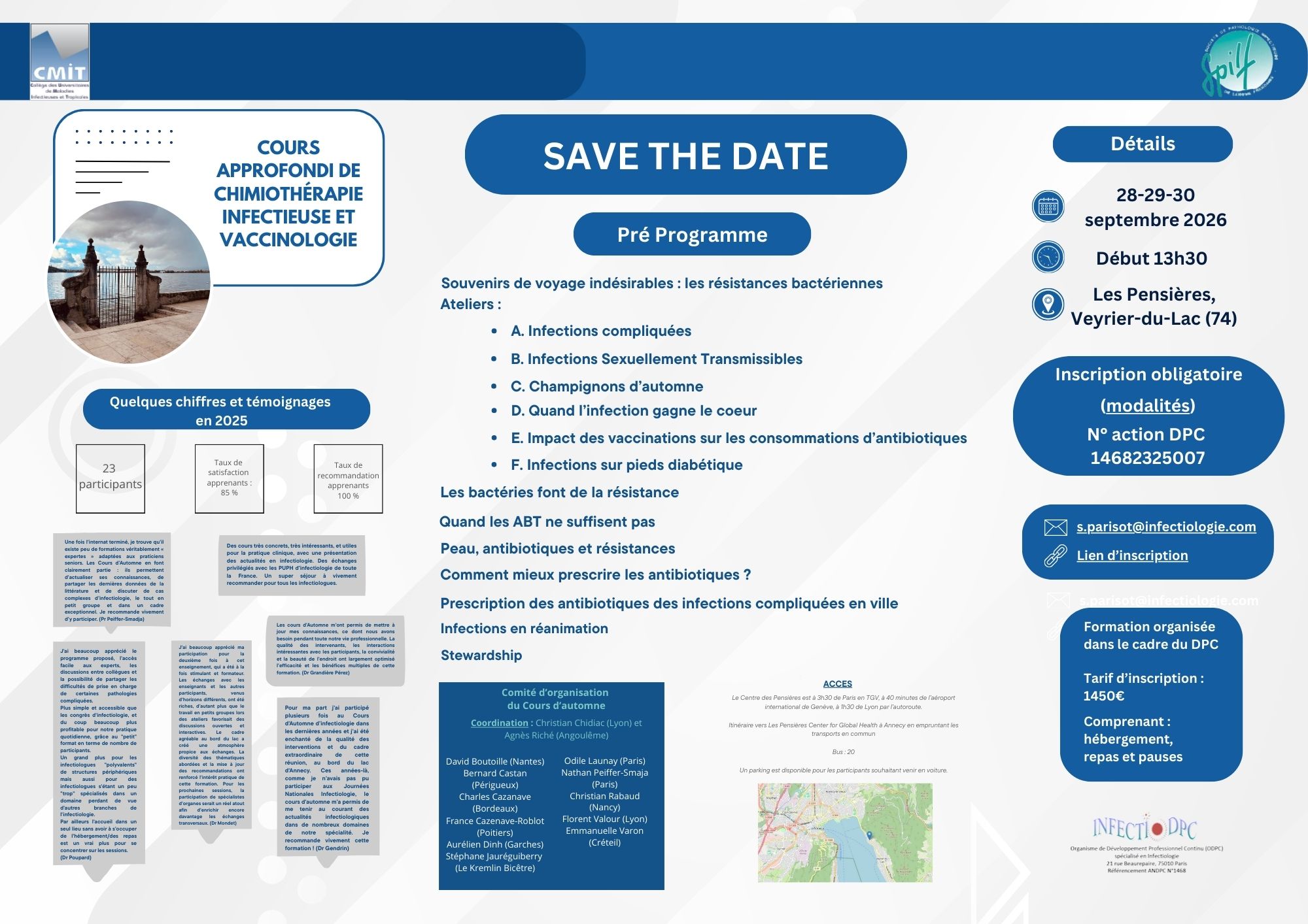 Cours d’automne 2026 « Bon Usage des Antibiotiques : une action nécessairement multidisciplinaire autour du référent LES ASSISES DE L’INFECTIOLOGIE » Ajouter au calendrier Google Agenda iCalendar Outlook 365 Outlook Live Détails Début : septembre 28 Fin : septembre 30 Lieu LES PENSIERES 55 Rte d'Annecy VEYRIER DU LAC, 74290 France + Google Map Voir Lieu site web